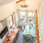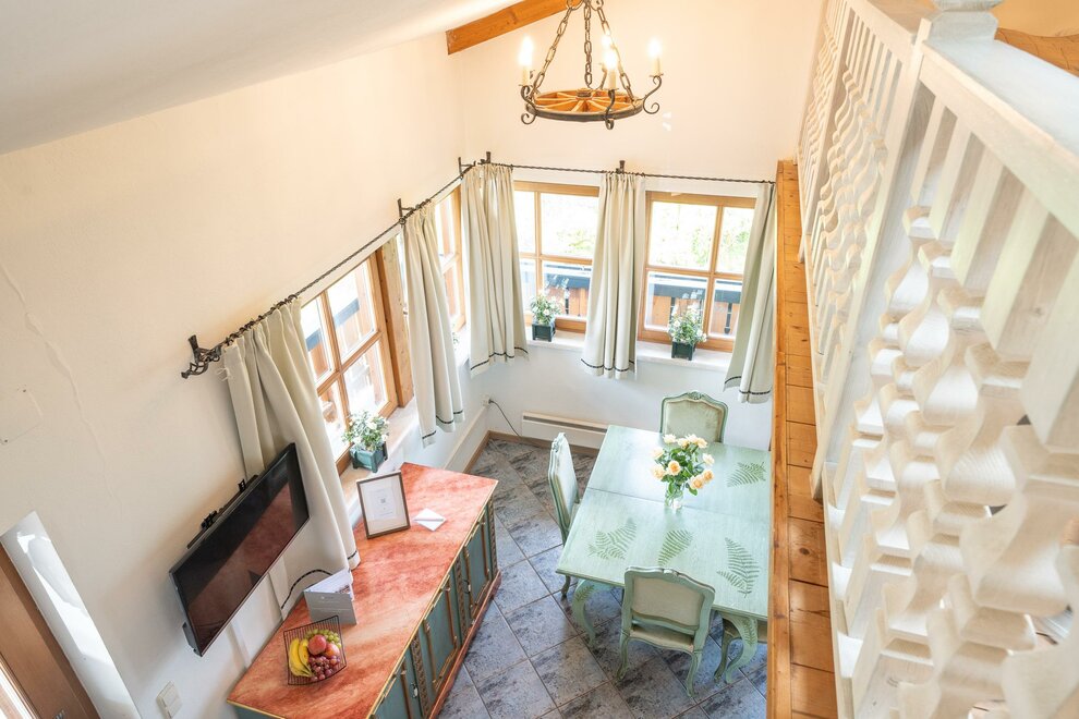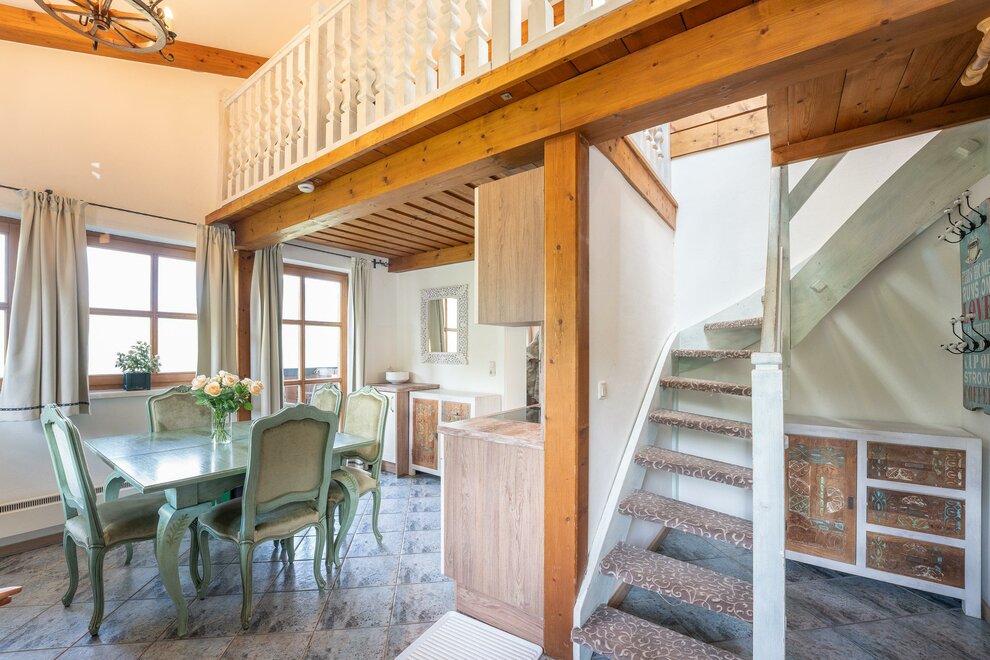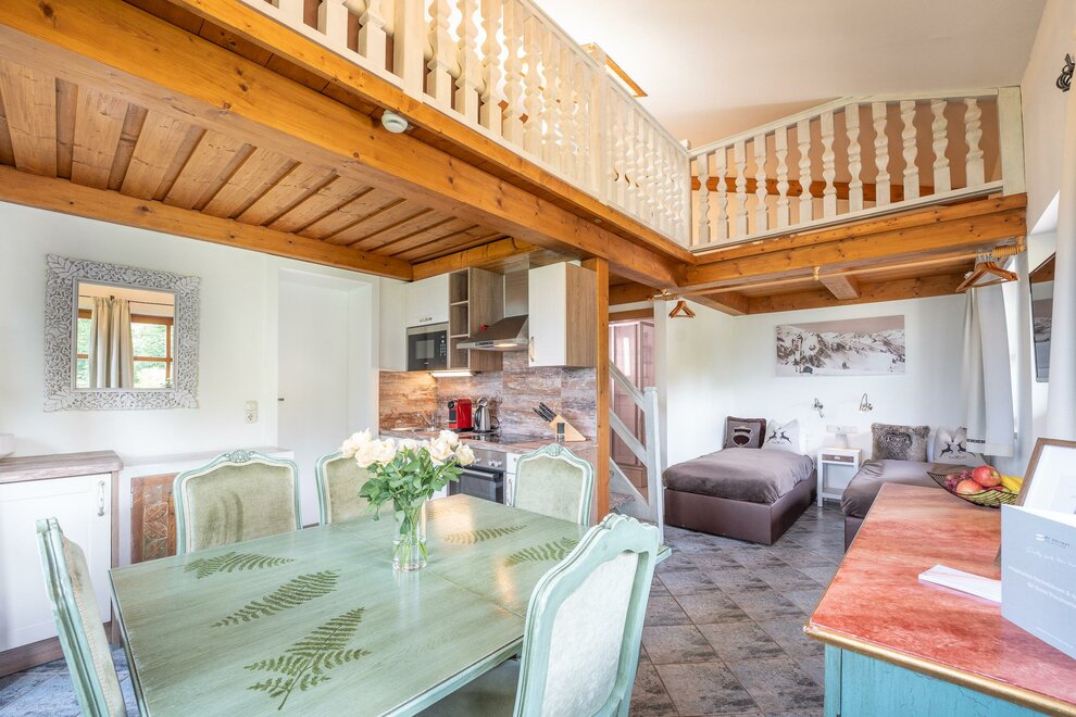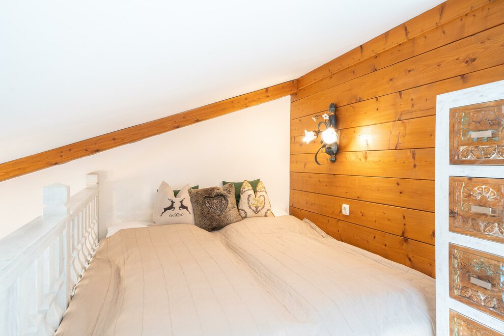 Das Apartment im Obergeschoss ist mit einem Wohn-Schlafraum, einer Galerie mit 2 Einzelbetten und Balkon ausgestattet. Es stehen eine vollausgestattete Küchenzeile und ein Bad mit Dusche und WC zur Verfügung.