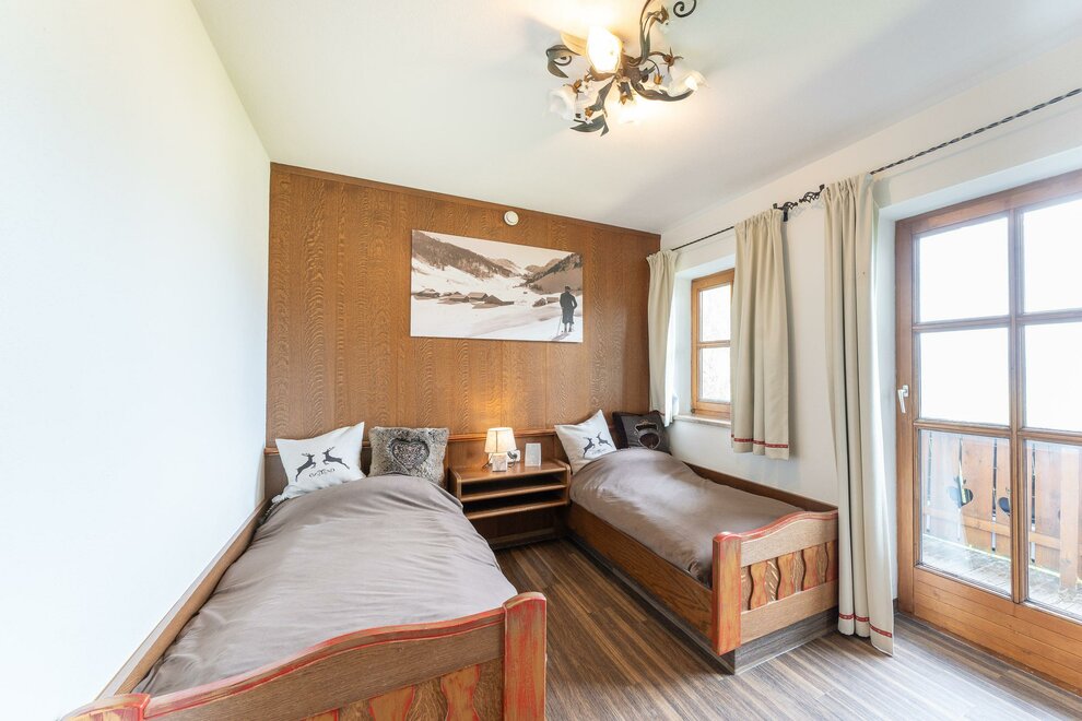 Das Apartment mit eigenem Zugang im Obergeschoss verfügt über 2 getrennte Schlafräume (einmal mit getrennten Betten) und einem Wohn-Schlafraum sowie 2 Balkone. Es stehen eine vollausgestattete Küchenzeile und ein Bad mit Dusche und WC zur Verfügung.