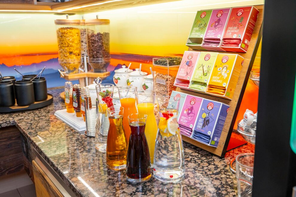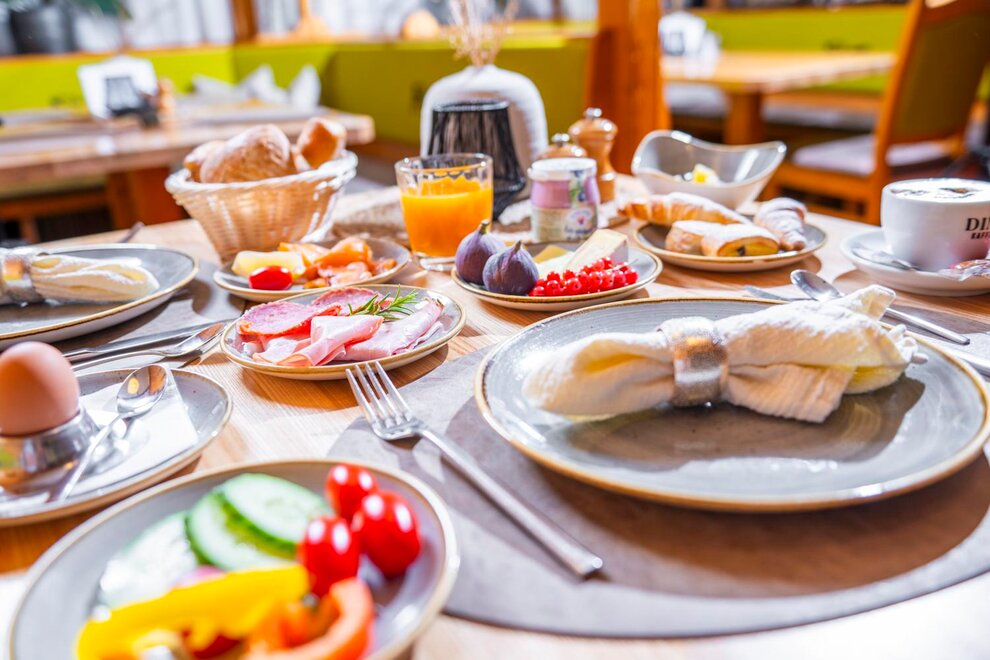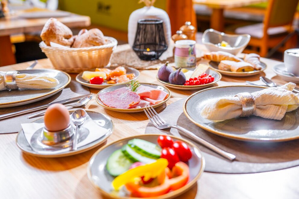 Genießen Sie den **Geruch frisch zubereiteter Hausmannskost** bei unserem eigenen Restaurant, wo sowohl **vegetarische** als auch traditionelle **Küche** auf der Speisekarte stehen. Beginnen Sie Ihren Tag mit einem reichhaltigen **Frühstücksbuffet**, das gesund und schmackhaft ist. Entspannen Sie im **Ruhe- / Relaxingraum** oder der **Sauna**, und tanken Sie neue Energie in der **Infrarotkabine**.