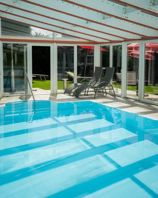 Gönn dir eine Auszeit in unserem Wellnessbereich! Genieße das Hallenbad mit Gegenstromanlage, entspanne in der Sauna, im Dampfbad oder der Infrarotkabine. Im Ruheraum und auf der Liegewiese mit gemütlichen Wasserbetten lassen sich die müden Beine so richtig ausspannen. Und für das optimale Verwöhnprogramm: Unsere wohltuenden Massagen!