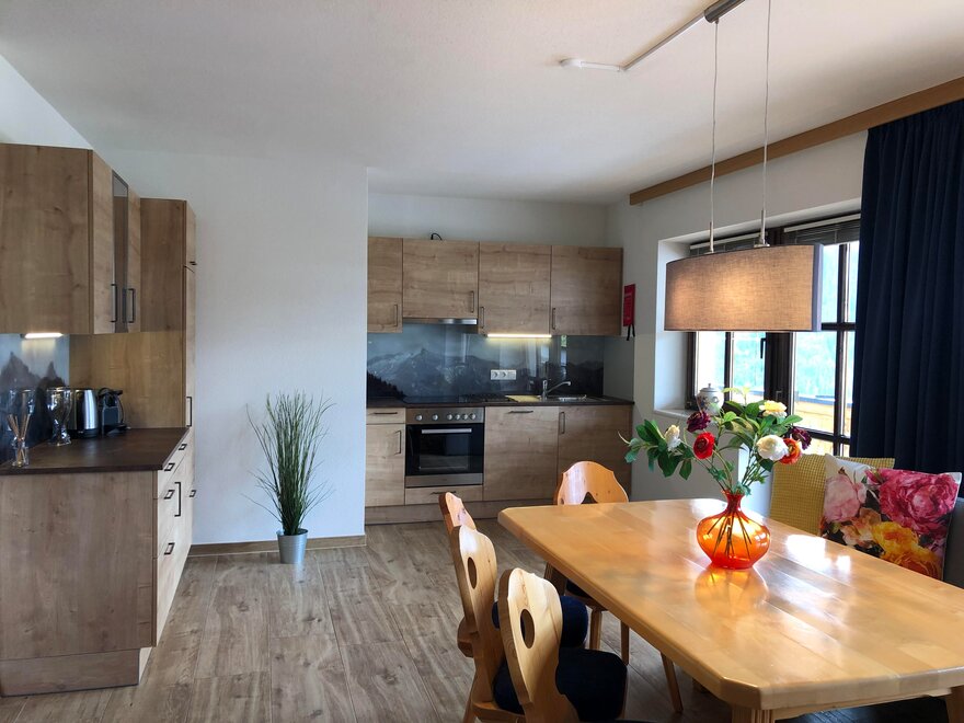 Küche top ausgestattet mit Kaffeemaschine (Nespresso), E-Herd, Backofen, Kühlschrank,