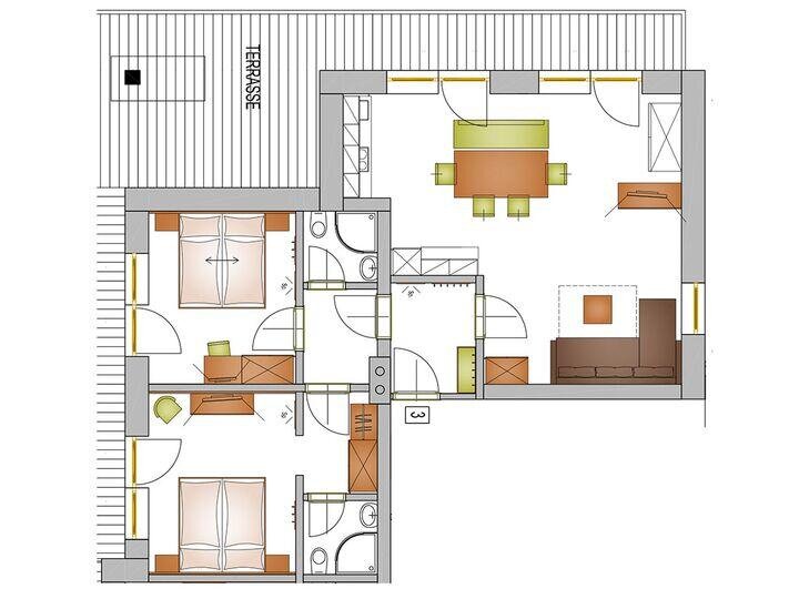 Fernseher, Schreibtisch, Zimmer/App. mit Verbindungstür, Grundausstattung (Handtücher, Bettwäsche, Seife, Toilettenpapier), Separate Schlafzimmer: 2, WiFi, Neuwertiges Zimmer/App., Tisch- und Küchenwäsche, Nichtraucher Zimmer/App./Whg., Schrank, Terrasse, Terrasse (teilweise), Balkon, Decken, Kaffee-Maschine, Ruhiges Zimmer/Appartement, Wohnküche, Geschirr vorhanden, Mikrowelle, Kühlschrank, Zentralheizung, Backofen, Toaster, Sitzgruppe, Wasserkocher, Behindertengerechtes Zimmer/App., Allergikerzimmer / -app.