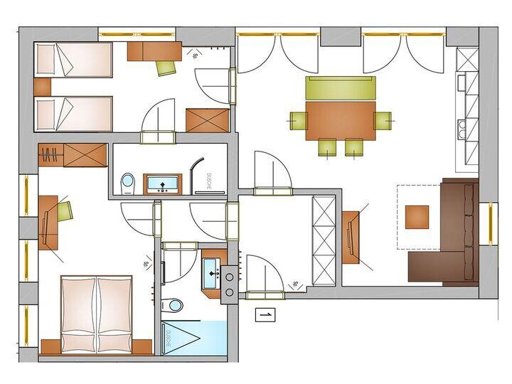 Die gemütliche 75m² Wohnung Schwab Top 1 besteht aus: