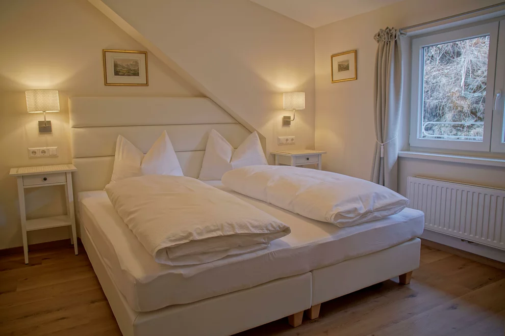 Großzügiges Appartement mit zwei Schlafzimmern mit Boxspringbetten, Badezimmer und seperatem WC.