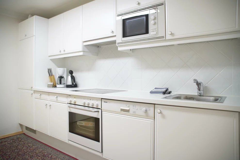Tisch- und Küchenwäsche, Geschirrspülbecken, Bettwäsche vorhanden, Fußende der Betten offen, Kaffee-Maschine, Handtücher vorhanden, Radio, Telefon, Kabelfernsehen, Kühlschrank, Elektroherd, Geschirrspülmaschine, Sitzgruppe, Wohn-/Schlafräume getrennt, Wasserkocher, Küchenzeile, Fernseher, Geschirr vorhanden