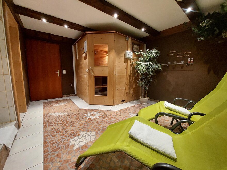 Unsere Sauna/Infrarot mit Ruhebereich rundet Ihren Urlaubstag perfekt ab (gegen Gebühr).