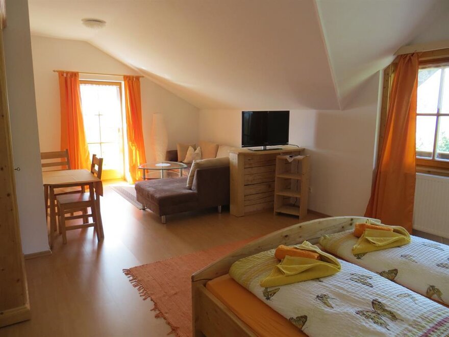 Schlafzimmer , Doppelbett und Schrank, sep. Raum mit kl. Küche, Ausziehsofa, TV , + Dusche/WCAusstattung Zimmer/Appartement