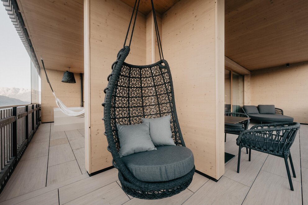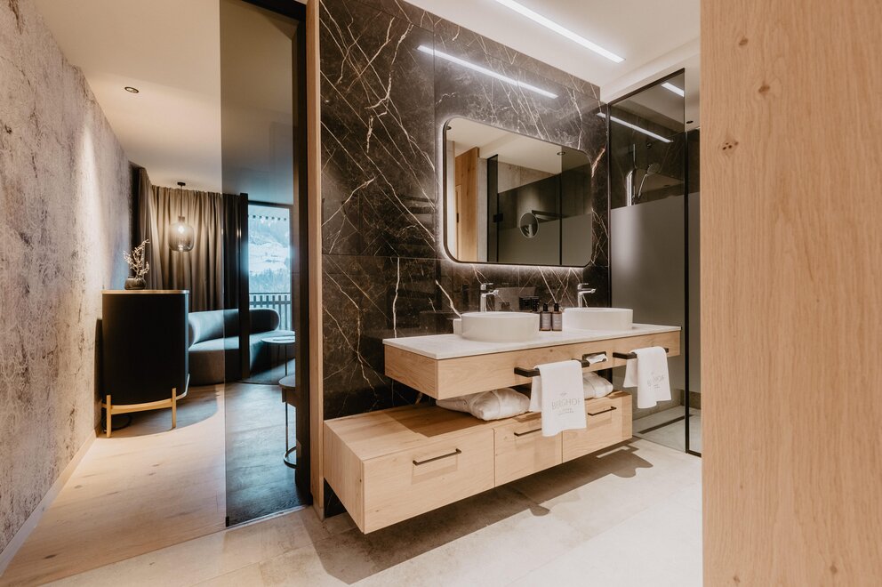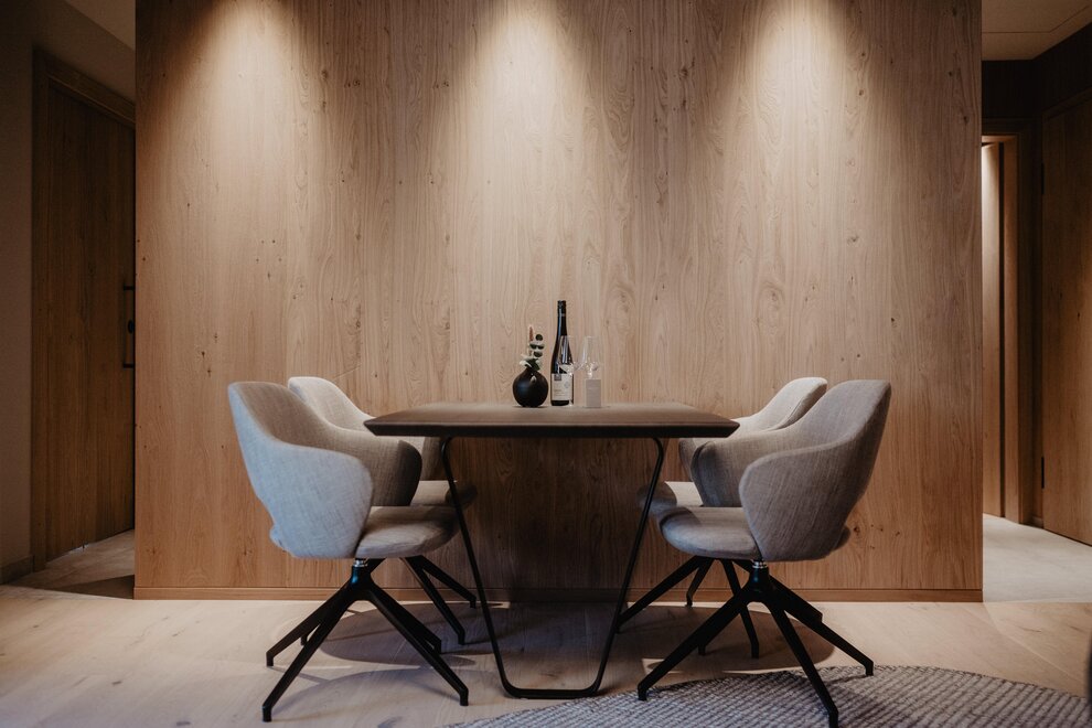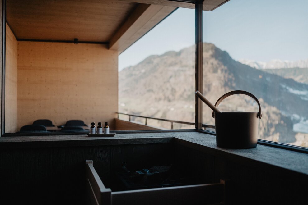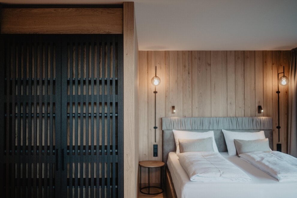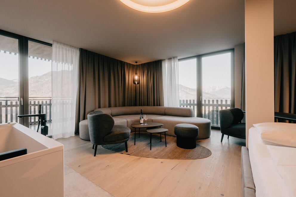 Natürliche, hochwertige Materialien und besondere Ausblicke auf die Bergwelt schaffen einen einzigartigen Rückzugsort.