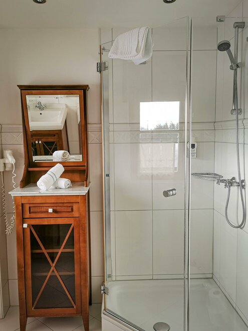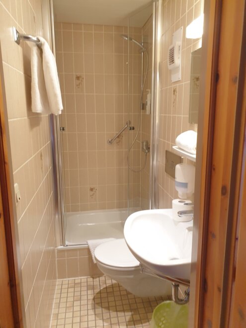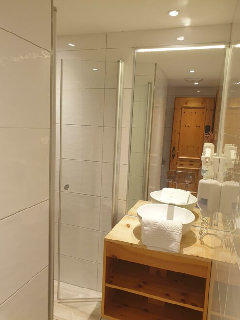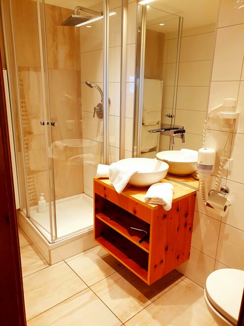 Doppelzimmer mit Dusche und WC. Ankommen und wohlfühlen in den kuscheligen Zimmern "Typ Edelweiss" im Arthurhaus.