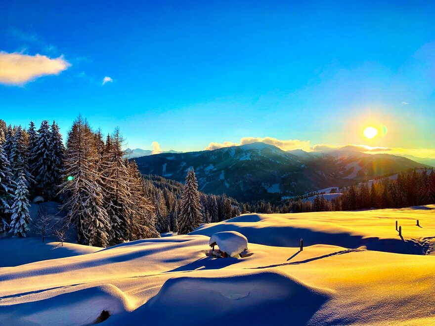 Wandere direkt vom Hotel aus auf 150 km bestens markierten Wanderwegen - von gemütlichen Almwegen über anspruchsvolle Bergtouren bis zu atemberaubenden Klettersteigen und mehr als 200 Klettertouren am Hochkönig. Das Highlight jeder Wanderwoche ist die Tour zum Matrashaus am Gipfel des Hochkönigs auf 2.941 m. Eigene Produkte aus unserer Sennerei geben dir die Kraft dazu.