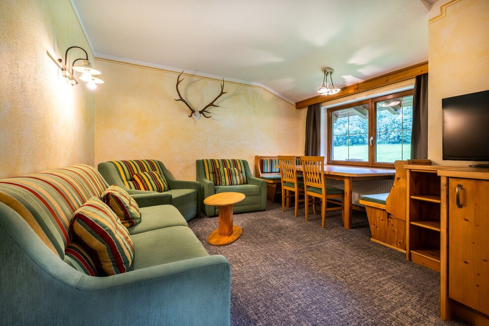 Balkon, Rustikale Möblierung, Kabelfernsehen, Safe, Radio, Toilettenartikel, Fernseher, Allergikerbettwäsche, Bademantel, Fußende der Betten offen, Haarföhn, Nichtraucher Zimmer/App./Whg., Familienzimmer / app., Telefon, Terrasse (teilweise), Sitzgruppe, WiFi, Internetanschlussmöglichkeit, Schreibtisch