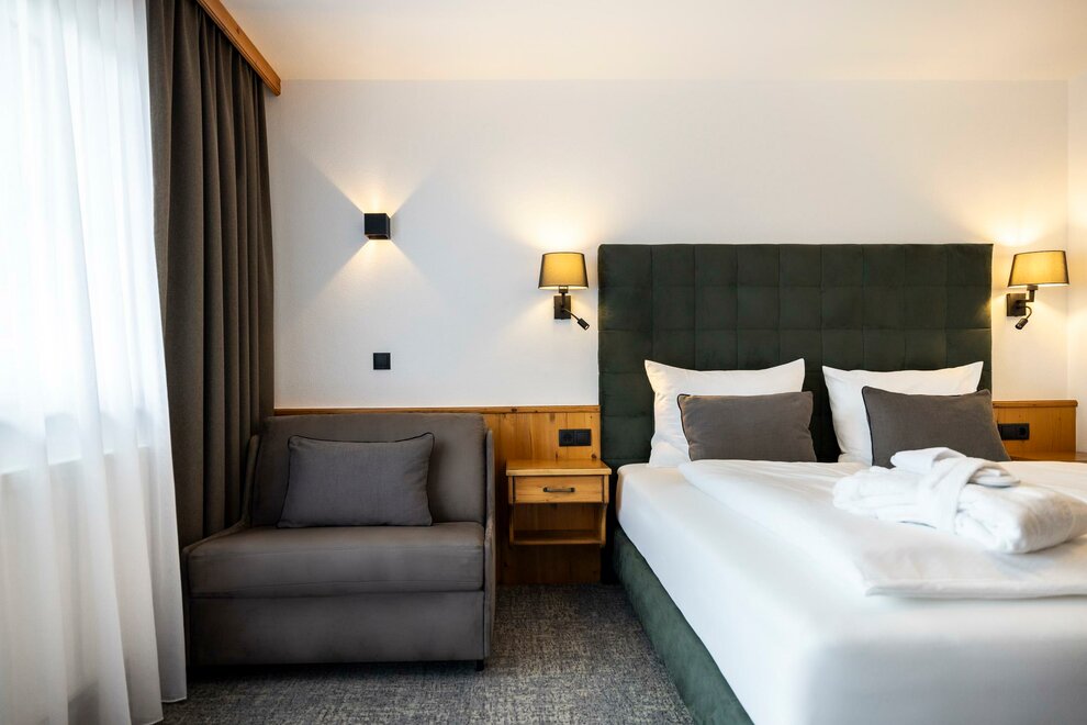 Gemütliches Doppel- bzw. Dreibettzimmer, TV, W-Lan, Dusche/WC, Föhn, Bademäntel, Handtücher, Safe, Balkon, 21qm.