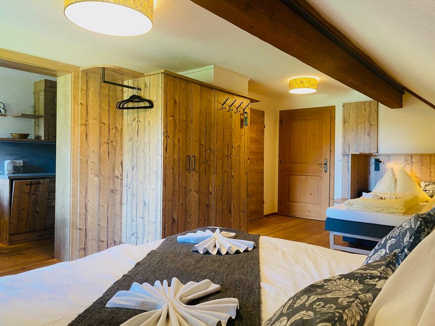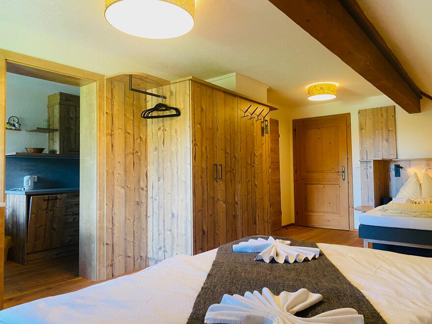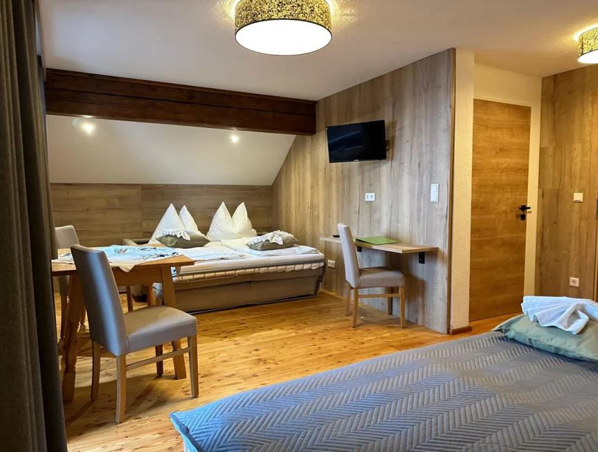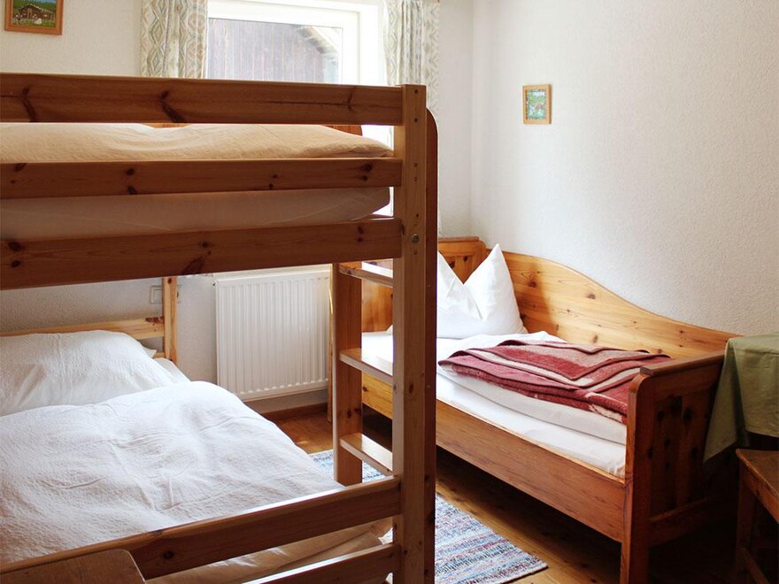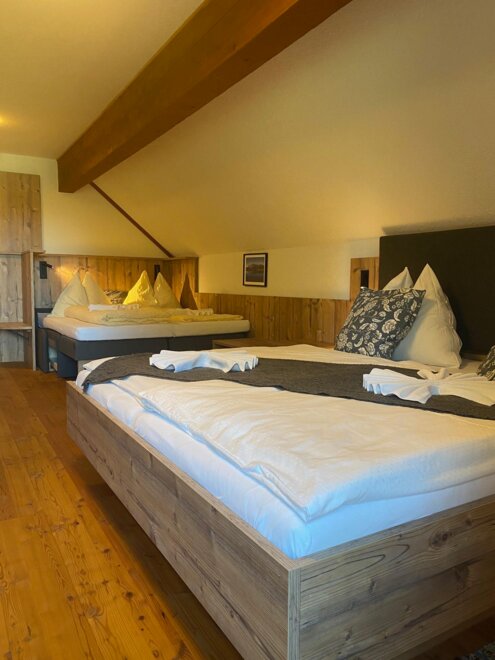 Liebevolle sehr nette Familienzimmer ca.35-40m² groß - für 2 - 4 Personen. Rustikal-einfach und gemütlich eingerichtet / Doppelbett und Doppelcouchliege.