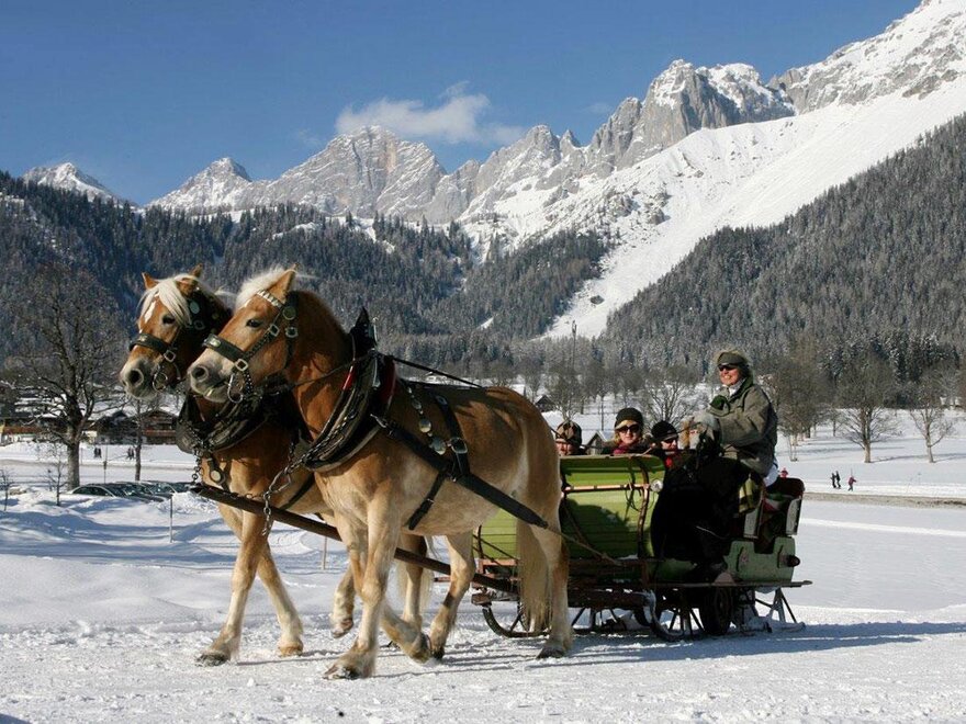 Die Ramsauer Winterwunderwelt lockt mit tiefverschneiter Landschaft, bestens präparierten Skipisten, Langlaufloipen und Wanderwegen, die direkt beim Haus vorbeiführen sowie mit einer Vielzahl an gemütlichen Hütten für romantische Einkehrschwünge.
