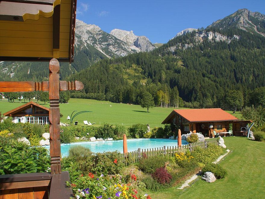 Zur hofeigenen „Lärchbodenalm“ wandern Sie ca. 50 min. Diese gehört mit der nahegelegenen Bergkapelle sicher zu den urigsten Almhütten von Ramsau am Dachstein und Schladming-Dachstein.
