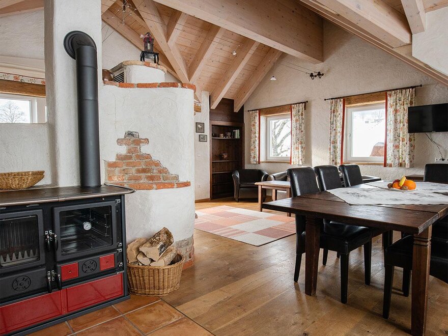Bettwäsche vorhanden, Wohn-/Schlafräume getrennt, Handtücher vorhanden, Küche, Elektroherd, Wasserkocher, Rustikale Möblierung, Kühlschrank, Kachelofen, Terrasse, Fernseher, Geschirrspülmaschine, Balkon, Geschirrspülbecken, Dunstabzug, Internetanschlussmöglichkeit, Geschirr vorhanden, Tisch- und Küchenwäsche, Schreibtisch, Nichtraucher Zimmer/App./Whg., Sitzgruppe, Kaffee-Maschine, Gefriermöglichkeit