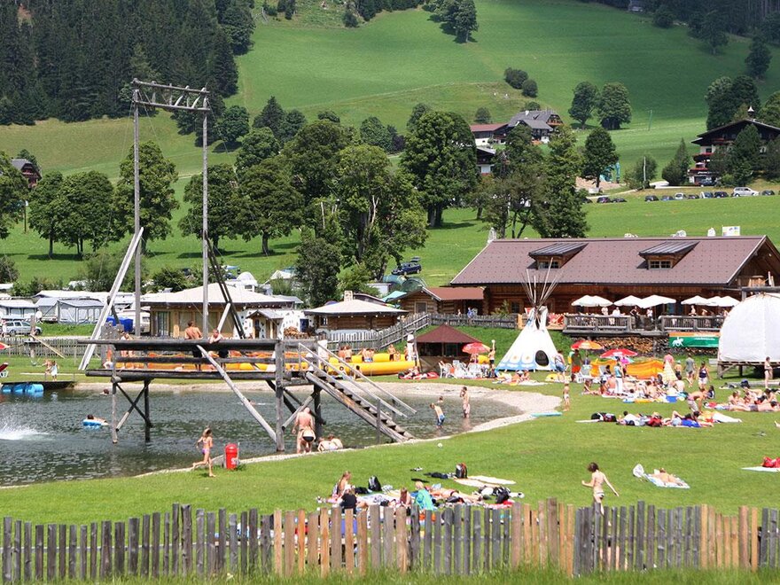 Die Kinder vergnügen sich auf einer ca. 5000m2 große Spielwiese mit überdachter Riesensandkiste, Baumhaus, Vogelnest-Schaukel, Billard und Drehfußball, Rodeo-Reiten, Slackline Parcours, Go-Karts, Volleyball, wobei der Kreativität der Abenteurer und Entdecker keine Grenzen gesetzt sind!