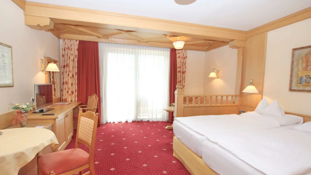 Doppelzimmer Tradition im gemütlichen Landhausstil, Südwestbalkon zur Sonnenseite mit traumhaften Garten- und Bergblick