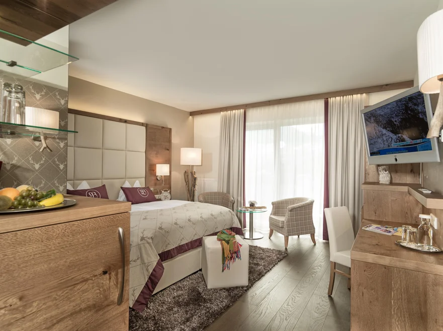 Eine große Auswahl verschiedener Zimmerkategorien und Suiten, eingerichtet in moderner, alpiner Eleganz erwartet Sie. Hier werden Wohnträume wahr. Viel Freiraum genießt man im 7000 m² großen Zaubergarten und auf der sonnigen Panorama-Terrasse.
