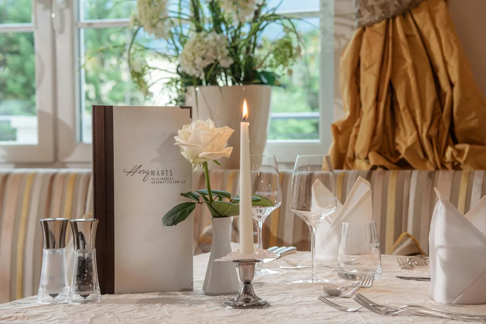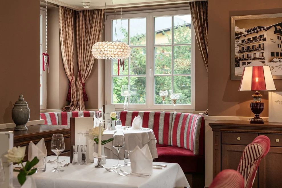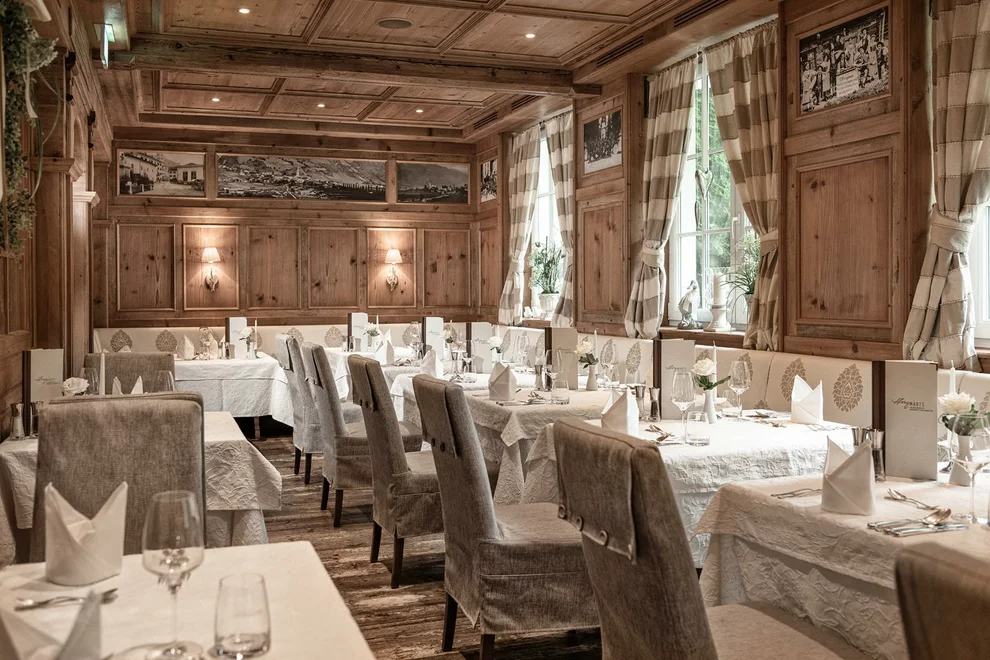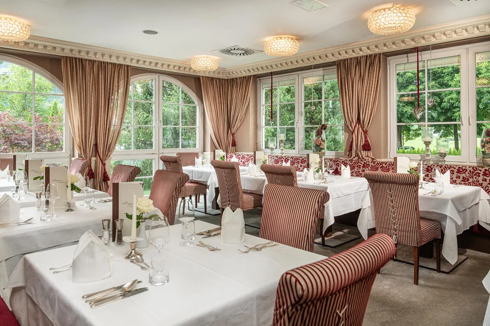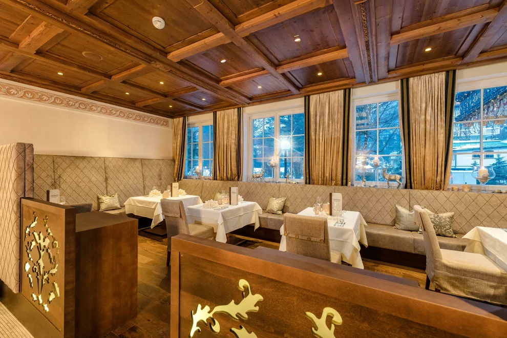 Das absolute Highlight stellt die ausgezeichnete Gourmet-Küche dar, welche internationale wie regionale Einflüsse phantasievoll kombiniert und beweist, dass sich gesundes Essen und Gaumen-Genuss nicht ausschließen. Zusätzlich täglich ein Vitalmenü und ein Kinder-Wahlmenü. Wiederholt vom Falstaff-Restaurant Guide mit 2 Goldenen Gabeln prämiert. Auf Nahrungsmittel-Unverträglichkeiten wird gerne und gut eingegangen. Ein kulinarisches Wochenprogramm sorgt für Abwechslung, wie z.B. jeden Mittwoch mit dem Gala-Dinner an unserem Hausfeiertag. In den verschiedenen Stuben im Restaurant finden Familien und Ruhesuchende ihren Platz.
