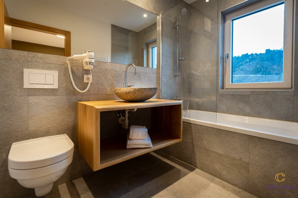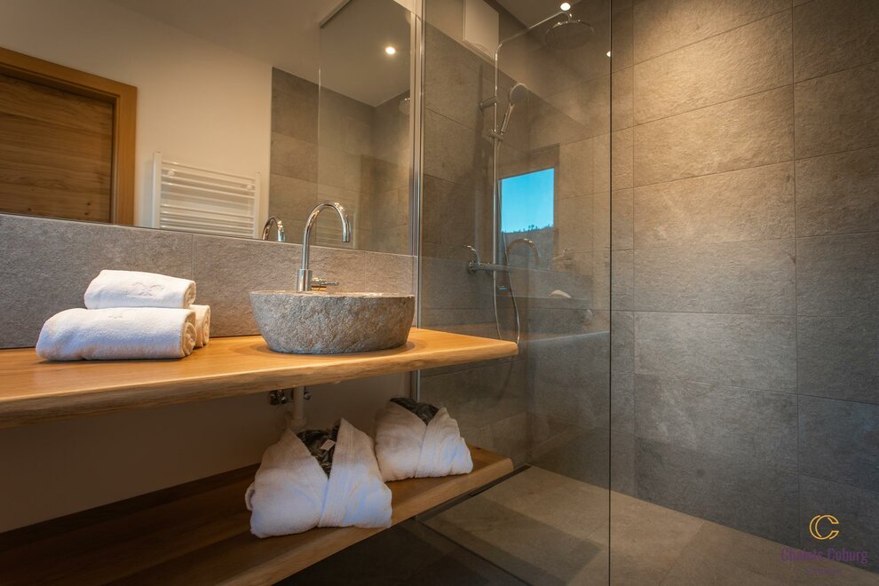 - 3 Bäder mit Natursteinbecken und Regendusche – en suite oder