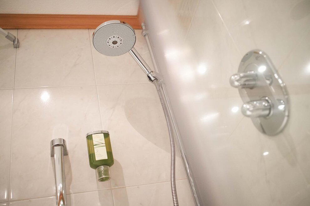 Das Badezimmer verfügt über Dusche, Fön, Kosmetikspiegel und Personenwaage.