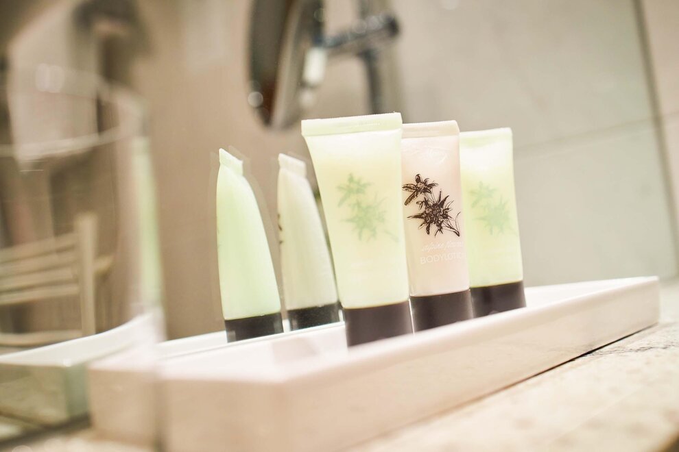 Das Badezimmer verfügt über Dusche oder Badewanne, Fön, Kosmetikspiegel und Personenwaage.