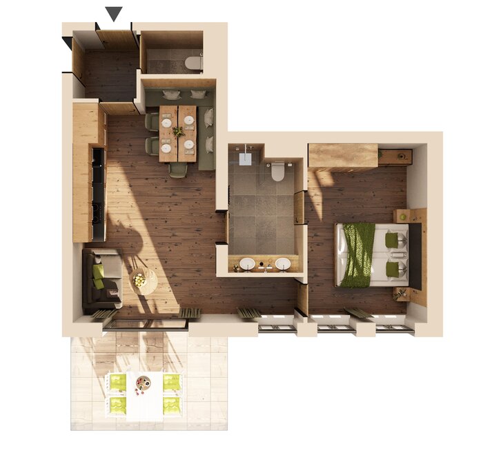 Moderner Komfort trifft auf hochwertige Materialien. Mit Verbindungstüre für bis zu 6 Personen möglich.