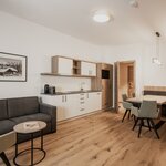 Raum lautet unsere Devise – ob jeder für sich...oder doch für mehr. Mit einer großzügigen komplett ausgestatteten Wohnküche und gemütlicher Ausziehcouch sowie Essbereich. Mit Verbindungsmöglichkeit für bis zu 9 Personen.