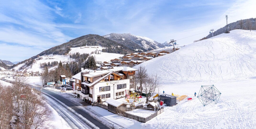 Im Winter geht’s vom Skikeller zum Sessellift und ab auf die Fageralm. In unserem familienfreundlichen Skigebiet sind Kinder bestens aufgehoben. Sogar während der Hauptsaison. Die schneesichere, kleine aber feine Fageralm macht Eltern und Kinder glücklich. Naturliebhaber jubeln sowieso, während die sportlichen Familienmitglieder in den benachbarten großen Skiregionen Schladming-Dachstein oder Ski amadé carven und powdern. Eine ausgezeichnete Kinderschischule inkl. Verleih befindet sich ebenfalls in unserem 3 Sterne Hotel.