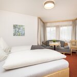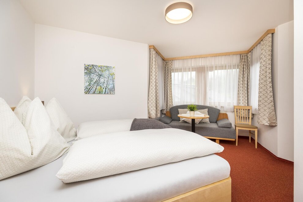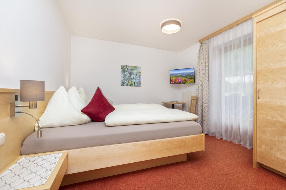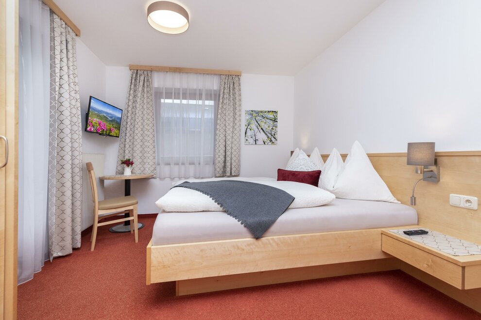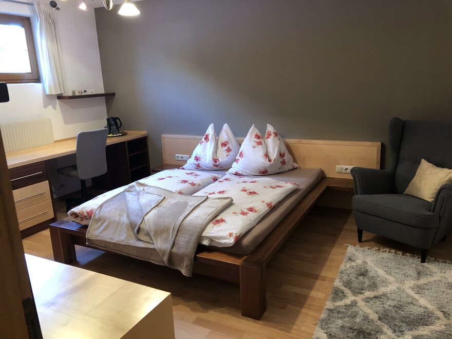 Die neu renovierten Zimmer bestehen aus Vollholzmöbeln - ca. (18m2). Jedes Zimmer besteht aus DU/WC, Föhn, Flat-TV, Zimmersafe und Balkon. Das Frühstück ist ein sehr gutes, erweitertes Interkontinentales Frühstück und wird in die Wohnküchen serviert!