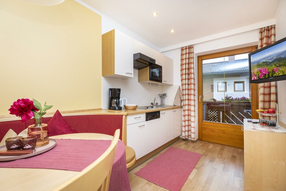 Appartement TYP A: 2-3 Pers. (31m2)- " Lieblingsplatz": 1 Schlafz. DU/WC, Balkon, Fön, Safe, Wohnküche mit Schlafcouch für eine 3. Person. Küche mit Flat-TV, Spülmaschine, Kühlschrank, Mikrowelle, Ceran-Kochfeld, Kaffeem., Wasserkocher, Toaster.
