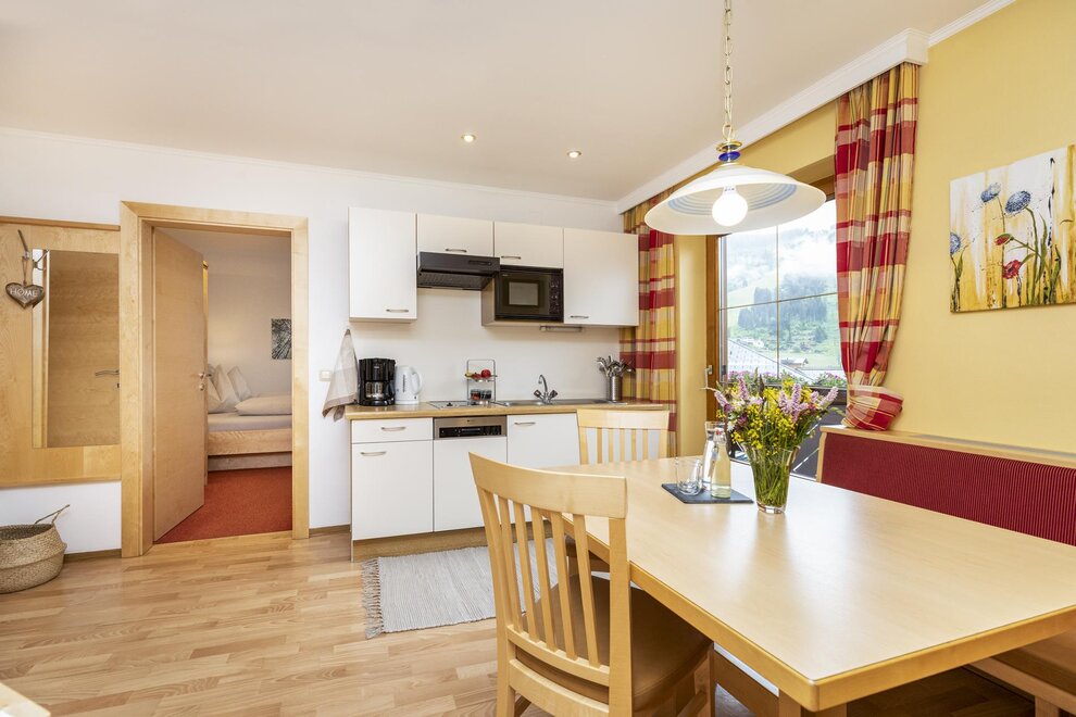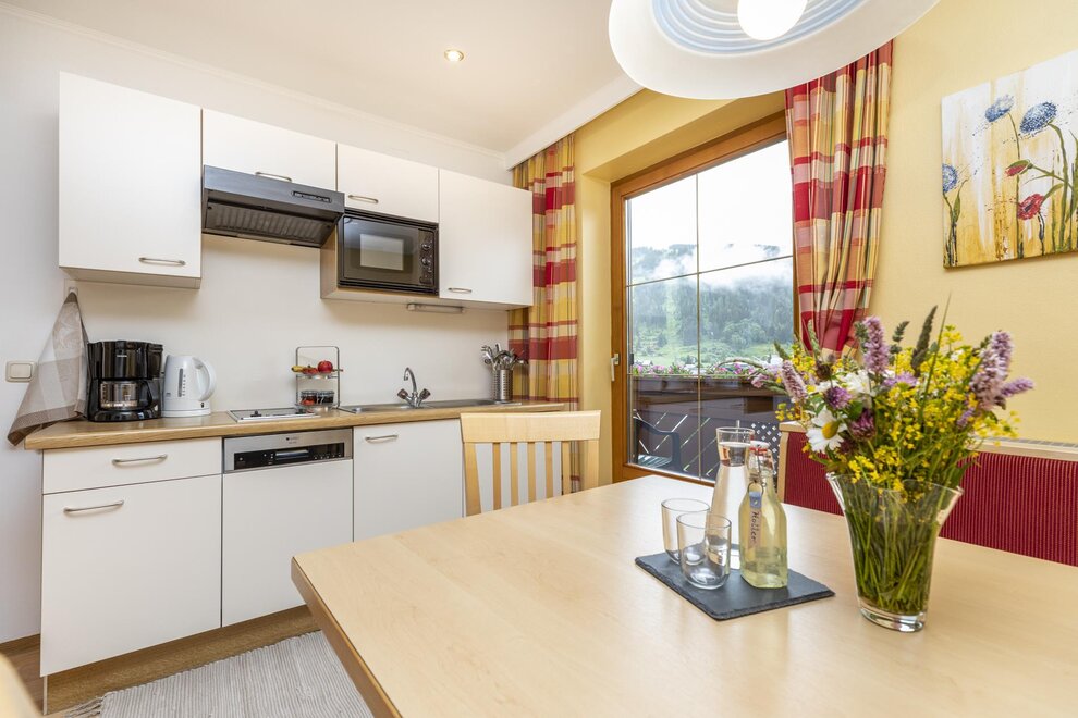 Appartem. TYP C : 4-5 Pers. (51m2)"Heimatliebe": 2 Schlafz., 2 x DU/WC, Balkon, Fön, Zimmersafe und Flat-TV. Wohnküche mit Flat-TV, Geschirrspüler, Spüle, Cerankochfeld, Mikrowelle/Grillfunktion, Kühlschrank, Toaster, Wasserkocher/Kaffeemaschine.