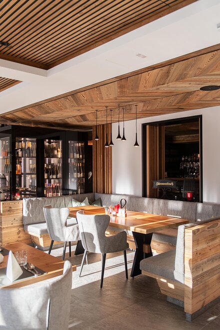 Genießen Sie kulinarische Highlights, darunter die „Green Alpine Bar“, das „Hotelrestaurant“ selbst, sowie das à la carte Restaurant "s'Kessei".