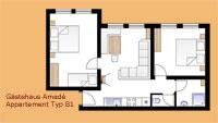 Größe 55 m² Belegung 1 - 5 Erwachsene , 0 - 3 Kinder Zimmer 2 Schlafzimmer 1 Zimmerdetails
