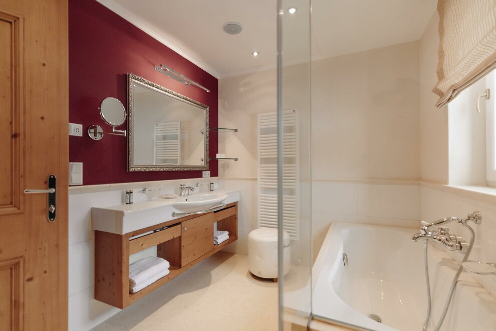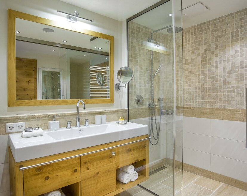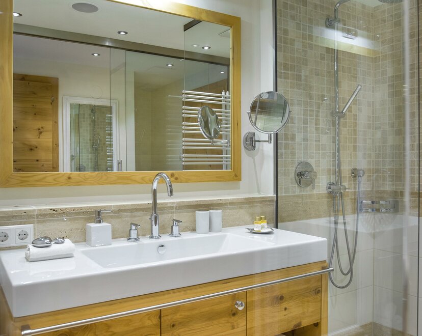 ca. 40 m² - (modern oder Zirbe) - Schlaf- und Wohnteil, Balkon, Badewanne oder Dusche, getrenntes WC, Telefon, Minibar, Flat-TV, Radio, Safe, Fön, W-LAN