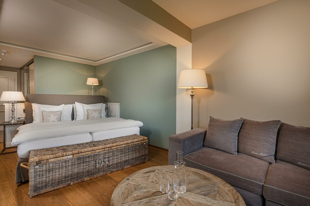 ca. 58 m², für 2-4 Per., Wohn- und Schlafraum, großzügiger Balkon, Luxusbad mit Badewanne und Dusche, getrenntes WC, Minibar, Telefon, 2 Flat-TVs, Radio, Safe, Fön, W-LAN
