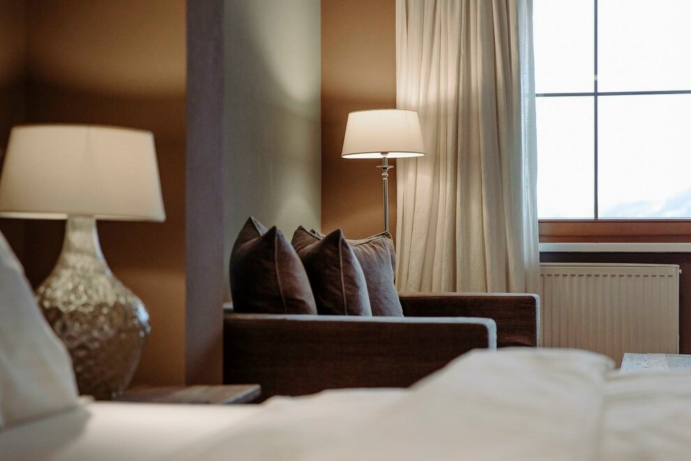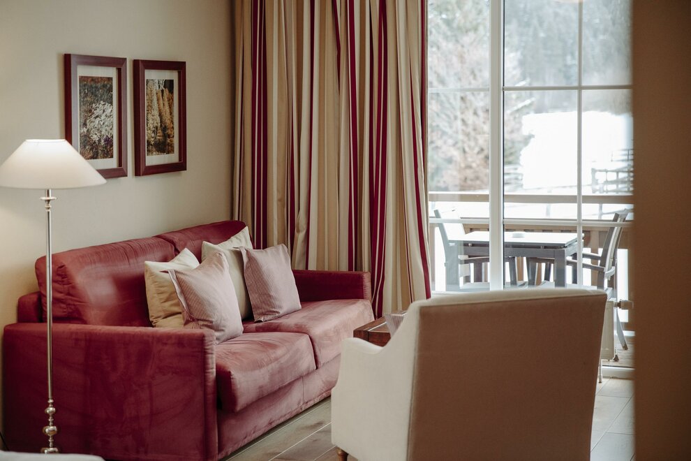 ca. 36 m² - modern oder Zirbe, Balkon, Badewanne oder Dusche, getrenntes WC, Minibar, Schlaf- und Wohnteil, Telefon, Flat-TV, Radio, Safe, Fön, W-LAN