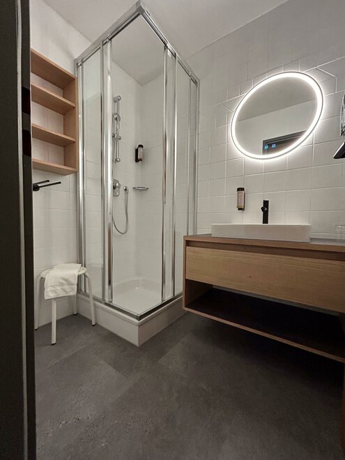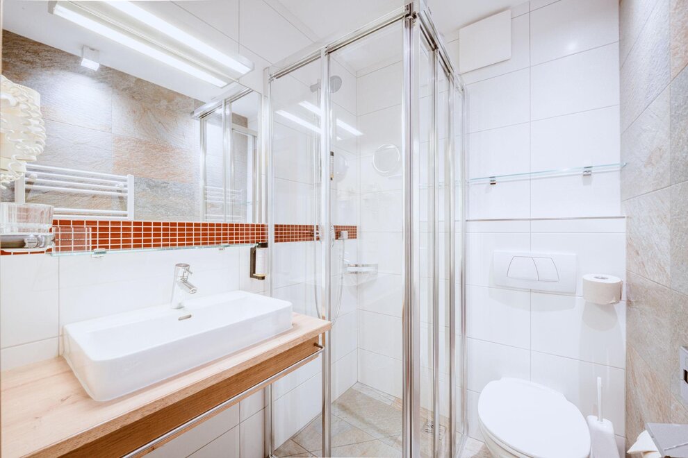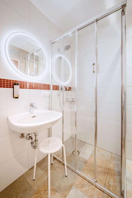 Dusche, WC, Duschhocker, Fließendes Kalt- und Warmwasser, Bad, Dusche, Bad, WC