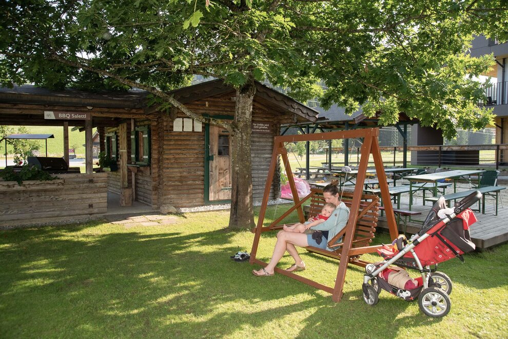 Gemütlichkeit bis 4 Personen. Zweiraumappartement mit Kochnische, Dusche, WC, Wohn-/Schlafraum mit Doppel-Schlafcouch, Schlafzimmer mit Doppelbett, Safe, Fön, Kabel-TV, Telefon, ohne Balkon, mit Blick in den Garten und Morgen Sonne.