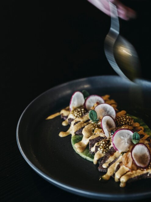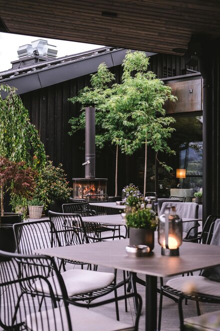 Ganztägig geöffnetes Restaurant mit Bar und Außenterrasse