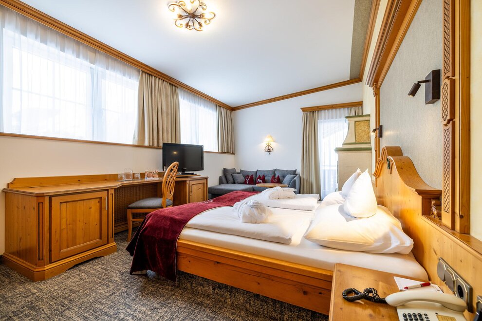 Fußende der Betten offen, Bademantel, Haustiere nicht erlaubt, WiFi, Fernseher, Safe, Telefon, Balkon, Schreibtisch, Internetanschlussmöglichkeit, Kabelfernsehen, Kachelofen, Sitzgruppe, Haarföhn, Nichtraucher Zimmer/App./Whg., Handtücher vorhanden, Radio, Toilettenartikel