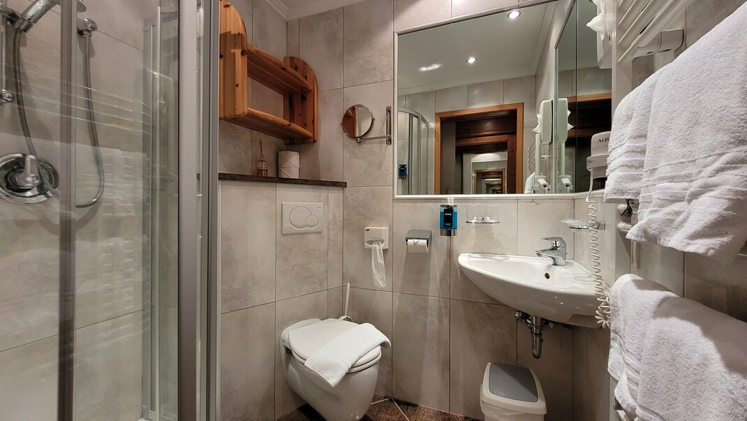 Badezimmer (ca. 1,80m x 1,60m) mit Dusche &WC, Föhn