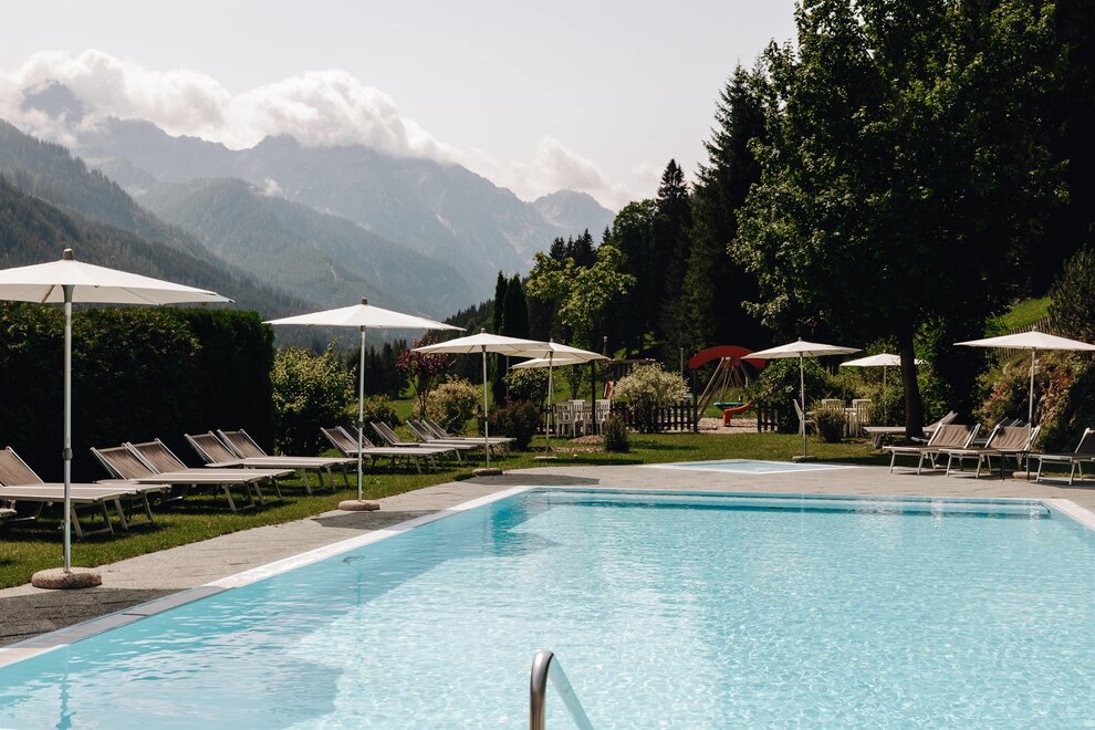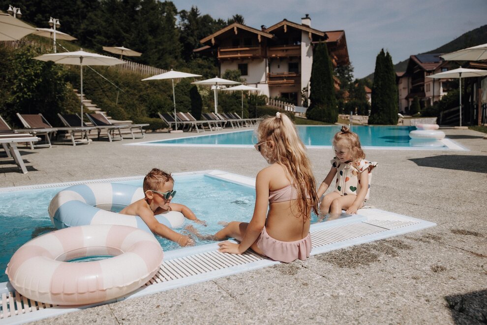 Familien genießen großzügige Zimmer & Studios, den Kinderspielraum im Haus sowie den Garten mit Kleinkinder-Spielturm, Freibad mit beheiztem Außenpool und eigenem Kleinkinderbecken (im Sommer, 3 Gehminuten vom Hotel)