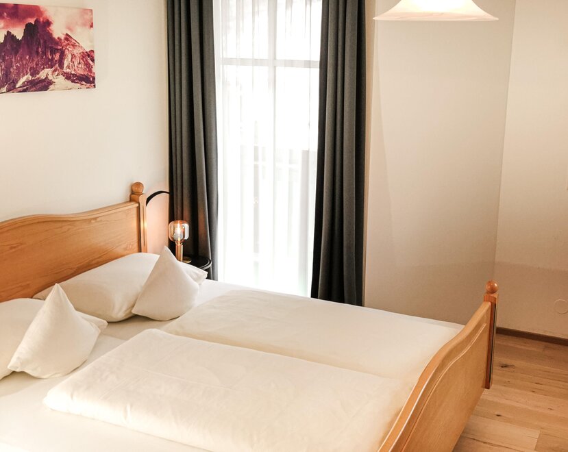 BASIC Doppelzimmer für 2 Pers . Gemütliches Doppelbett . Flat-Screen-Kabel-TV . Radio . Zimmersafe . Telefon . W-Lan . kleiner Balkon nach Nordwesten . Bad mit Dusche und Toilette zusammen . Haarföhn . Kosmetikspiegel . Auch zur Alleinnutzung buchbar