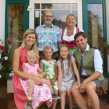 Ihre Gastgeberfamilie Michi und Brigitte, mit Sarah, Viktoria, Katharina und Michael und Seniorchefin Hanni.