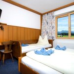 Unsere Doppelzimmer sind mit Vollholzmöbel ausgestattet. Alle haben ein eigenes Bad mit Dusche. In manchen Zimmer ist eine Aufbettung für Kinder möglich.