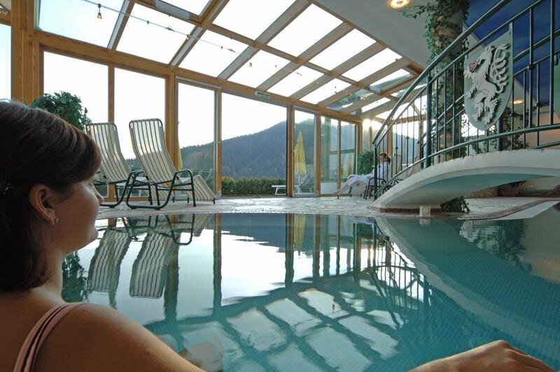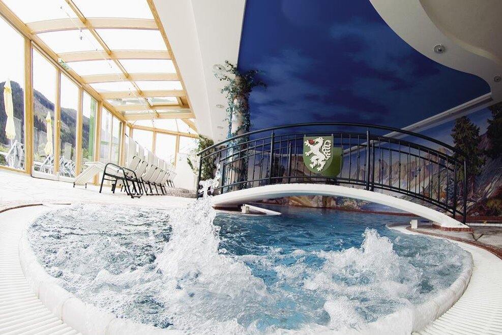 Tauchen Sie in unser attraktives Felsenhallenbad (5 x 11 m) mit herrlichem Panoramablick auf die Schladminger Tauern ein. Ausgestattet mit Gegenstromanlage, Whirlbank, Massagedüsen, Lichtspielen und Sonnenliegefläche für drinnen und draußen.