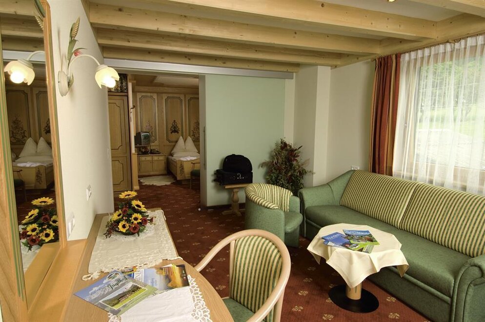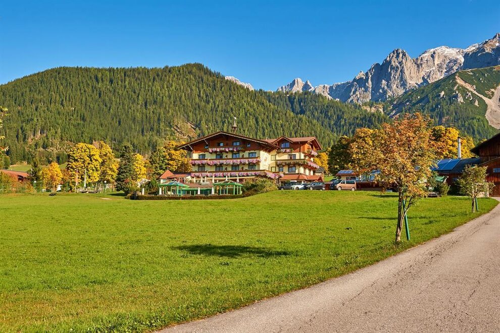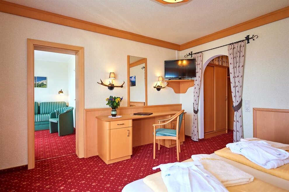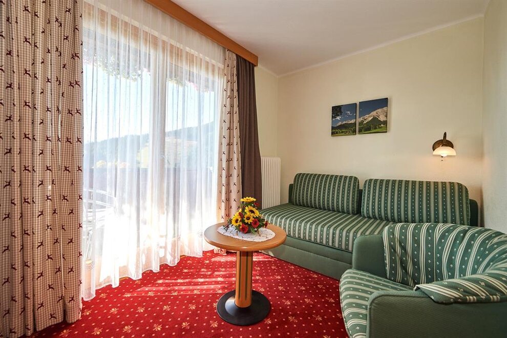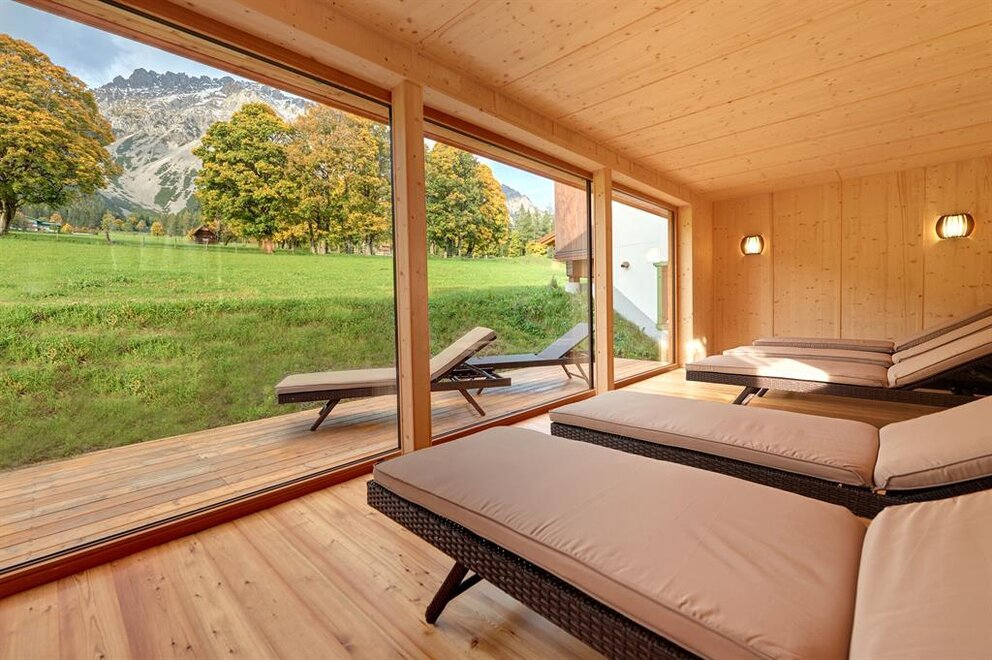 ohne Balkon mit Blick zum Dachsteinmassiv, inkl. Dusche, WC, Sitzecke, Schreibtisch, Telefon, SAT-TV, Wireless Lan, Safe, Fön und BademäntelAusstattung Zimmer/Appartement