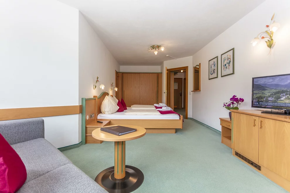 In trauter Zweisamkeit genießen Sie Ihren Urlaub im klassischen Doppelbettzimmer. Helle Farben charakterisieren diese Räume. Badezimmer mit Dusche, Haarfön, großt. mit Balkon, TV, gratis WLAN & Safe, gehören selbstverständlich auch zu diesem Zimmertyp.